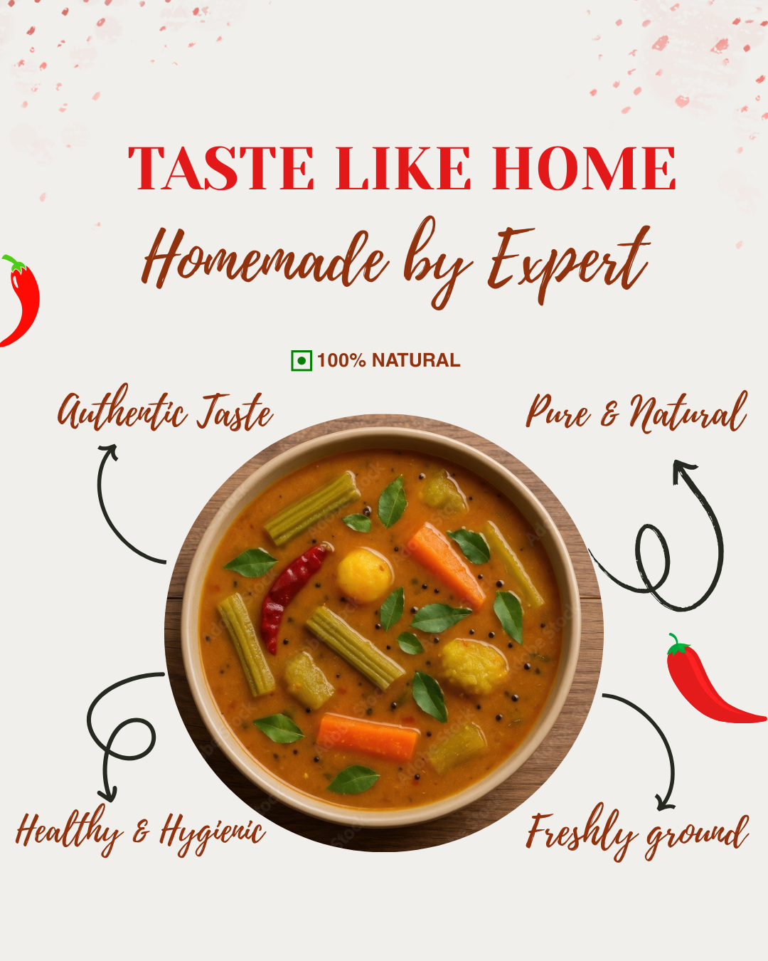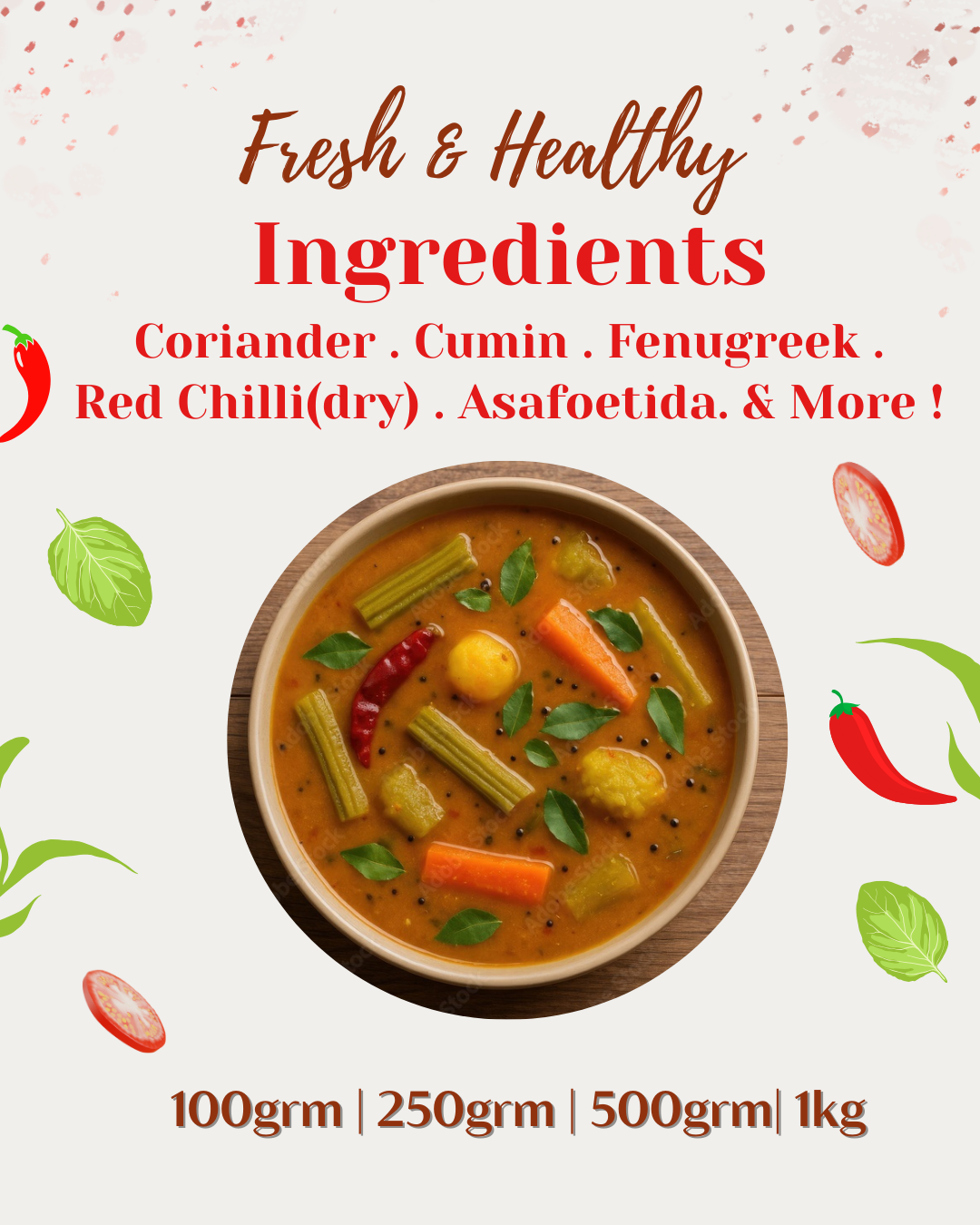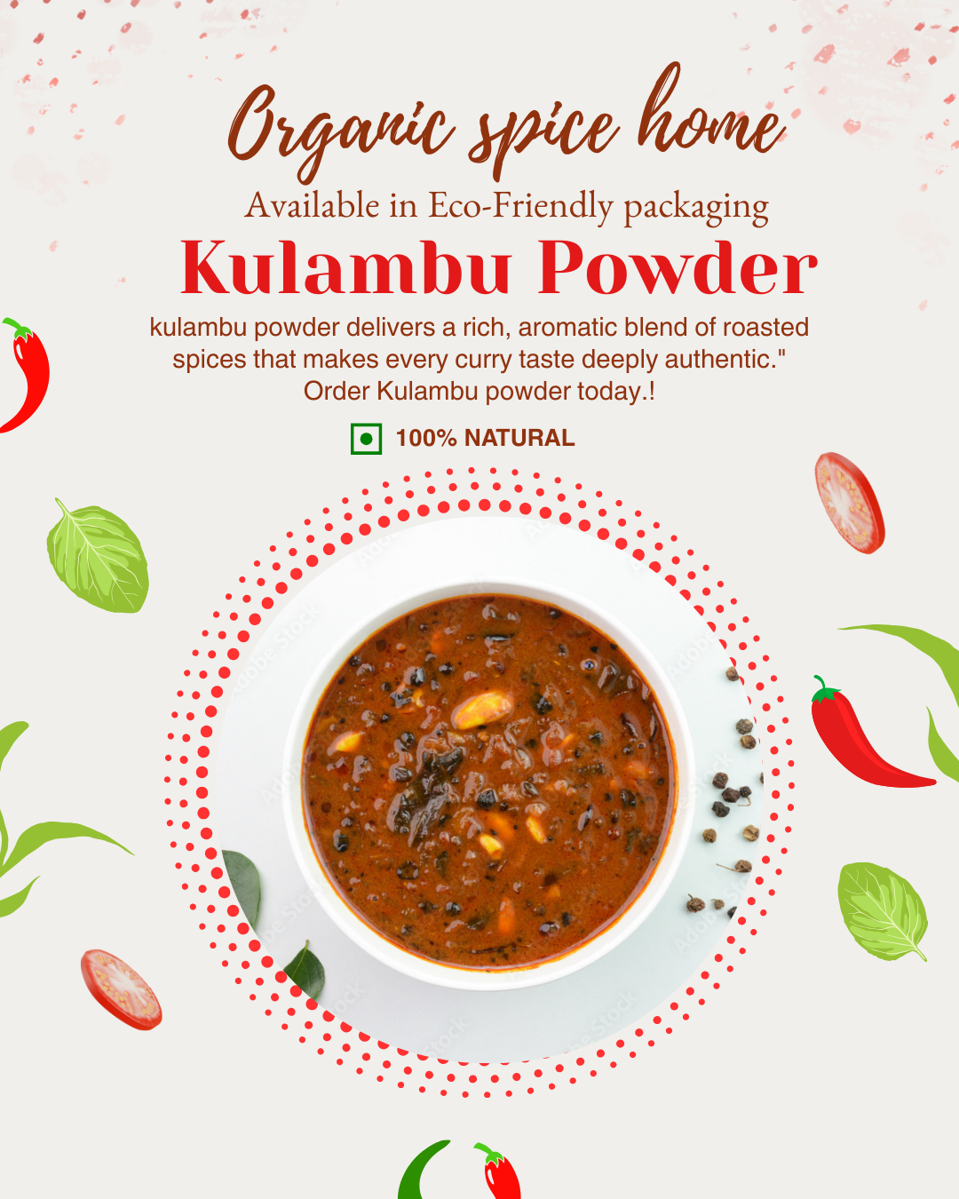 Bring home the real taste of South Indian restaurant-style kulambu with our specially made kulambu masala powder. Blended with freshly ground spices, it helps you recreate that spicy, crispy, and aromatic flavor that everyone loves.